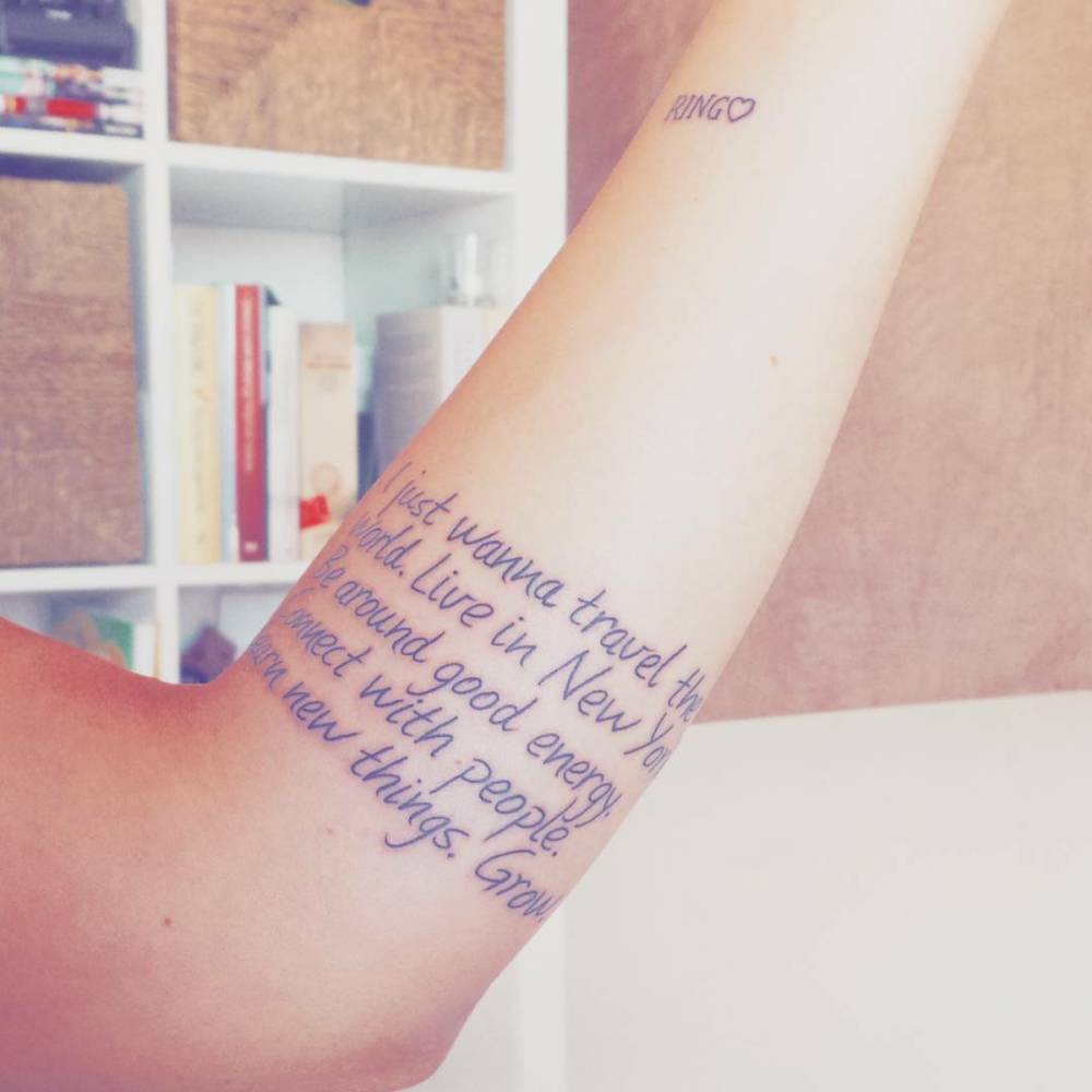 22 Forearm Tattoo Saying "I Just Wanna Travel The World. Qui